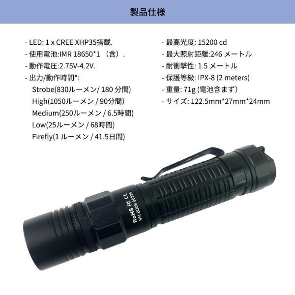 ThruNite スルーナイト TN30はCREE XML2 LEDを3灯搭載し、リチウムイオン充電池を3本使用したハイパワーLEDライトです。MAX3338ルーメン!ヘッド下にあるリングセレクターを回すすることで6段階の調光とストロボ点滅を含む7種のモードを操ることが出来ます。NITECORE Pi タクティカル・フラッシュライト, USBC 充電機能付き:SST 40 W LED1ランクアップ 1,950 lumens , 1A/ 1D、NL i 充電池 付属ThruNite 公式サイトリンクはこちら(%offのクーポンがあります): http//wwwthrunitecomThruNite アマゾンJPリンクはこちら http